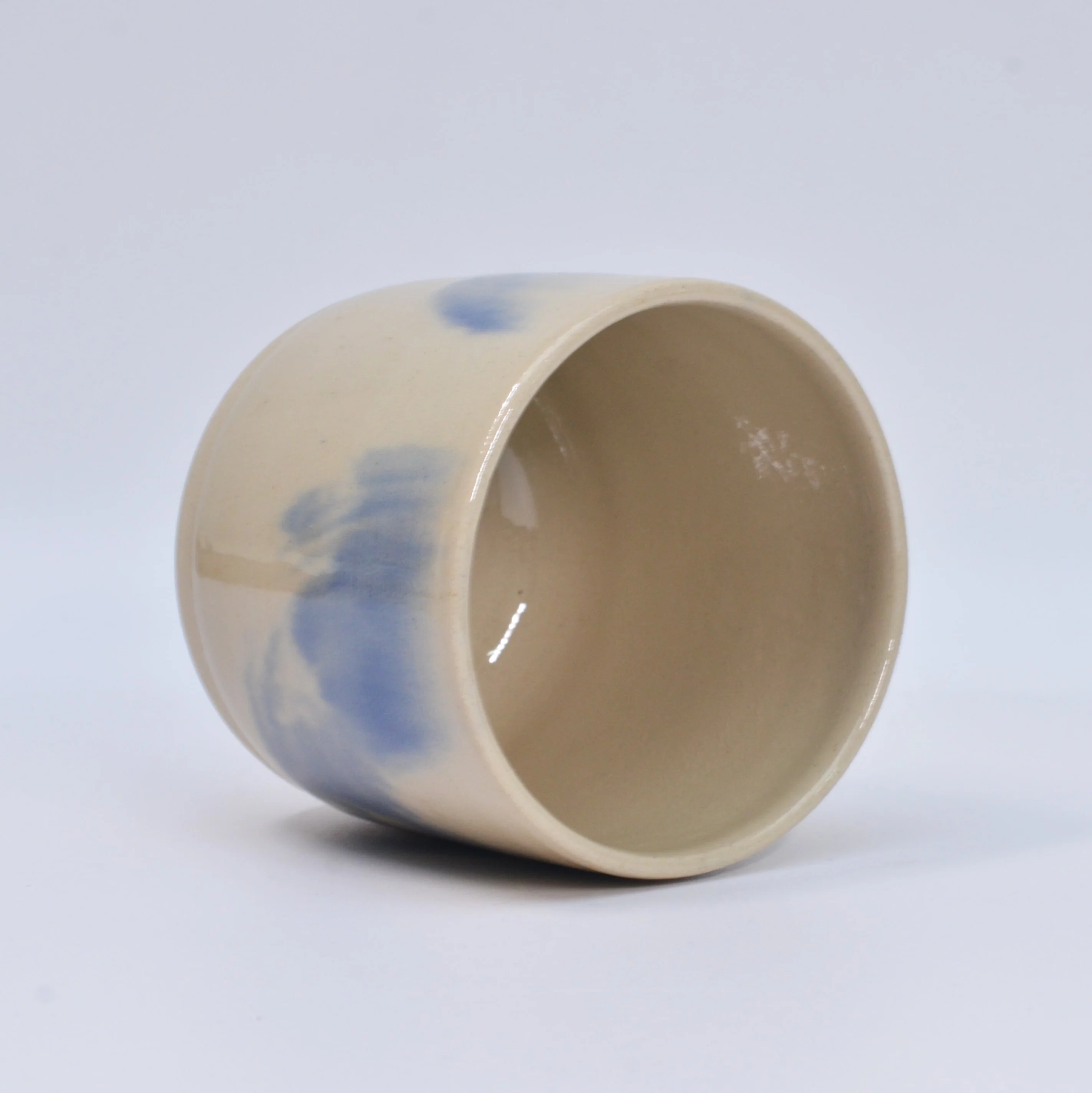 Handmade japanese design cup with delicate blue touch. This piece is one of a kind, and the pictures listed are true representations of the actual item. Embrace the uniqueness of this artistic creation in your daily sips.