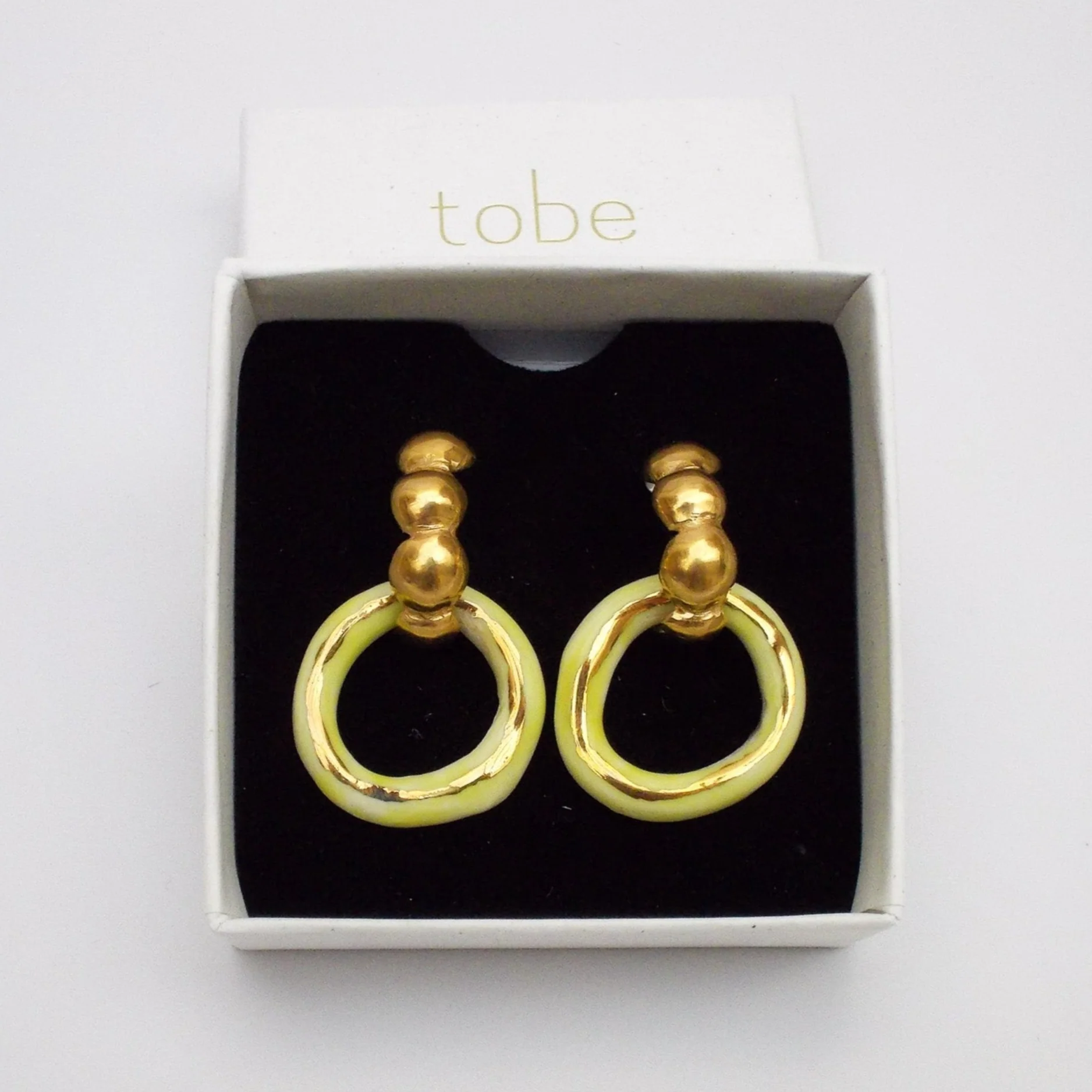 Dancing sunshine - Handmade Yellow Porcelain Earrings with Hoop