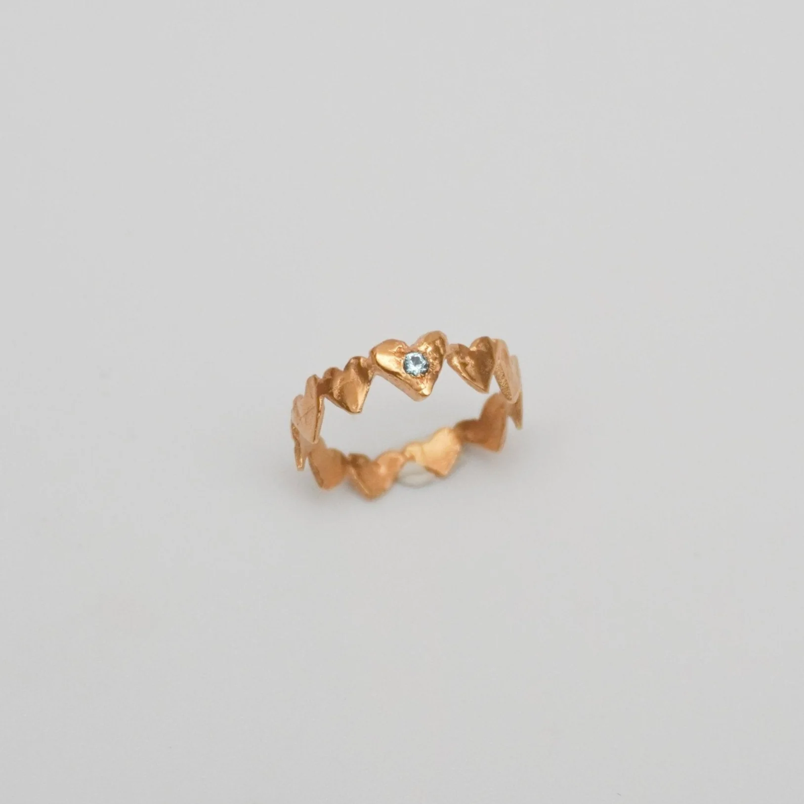 Handmade heart-shaped ring with synthetic zirconia.